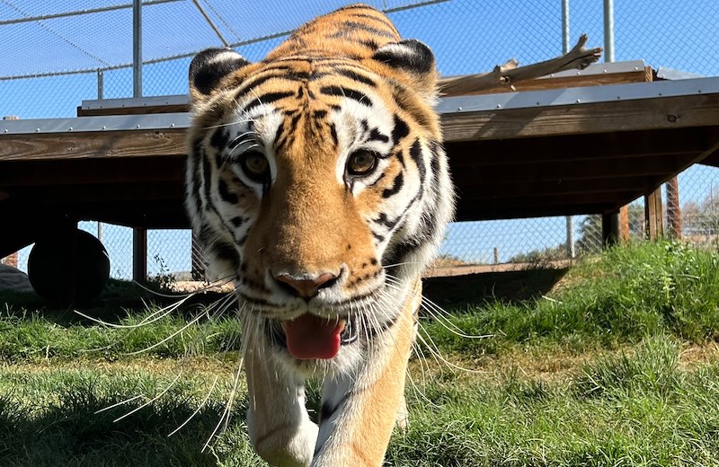 Kallie the tiger was one of four big cats that was rescued from a defunct drive-thru roadside zoo in Oklahoma. We collaborated with the Oakland Zoo (CA) and Turpentine Creek Wildlife Refuge (AR) to save the sole remaining animals at the abandoned facility that was once opened to the public and offered cub petting and photo opportunities. The facility was cited and shut down by the USDA in 2008 after multiple safety and welfare violations. The roadside zoo and its owner were reported to have ties to "Joe Exotic," also known in the well-known Netflix series as "Tiger King."
