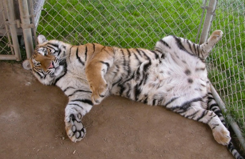 After rescuing the sanctuary's very first animals, tigers Raja and Natasha, we discovered that Natasha was pregnant. Sitarra and her sister, Tabu, were born here at Lions Tigers & Bears on November 8, 2002. Sitarra (which means "Star of India") weighed just 2 lbs 12 oz at birth.